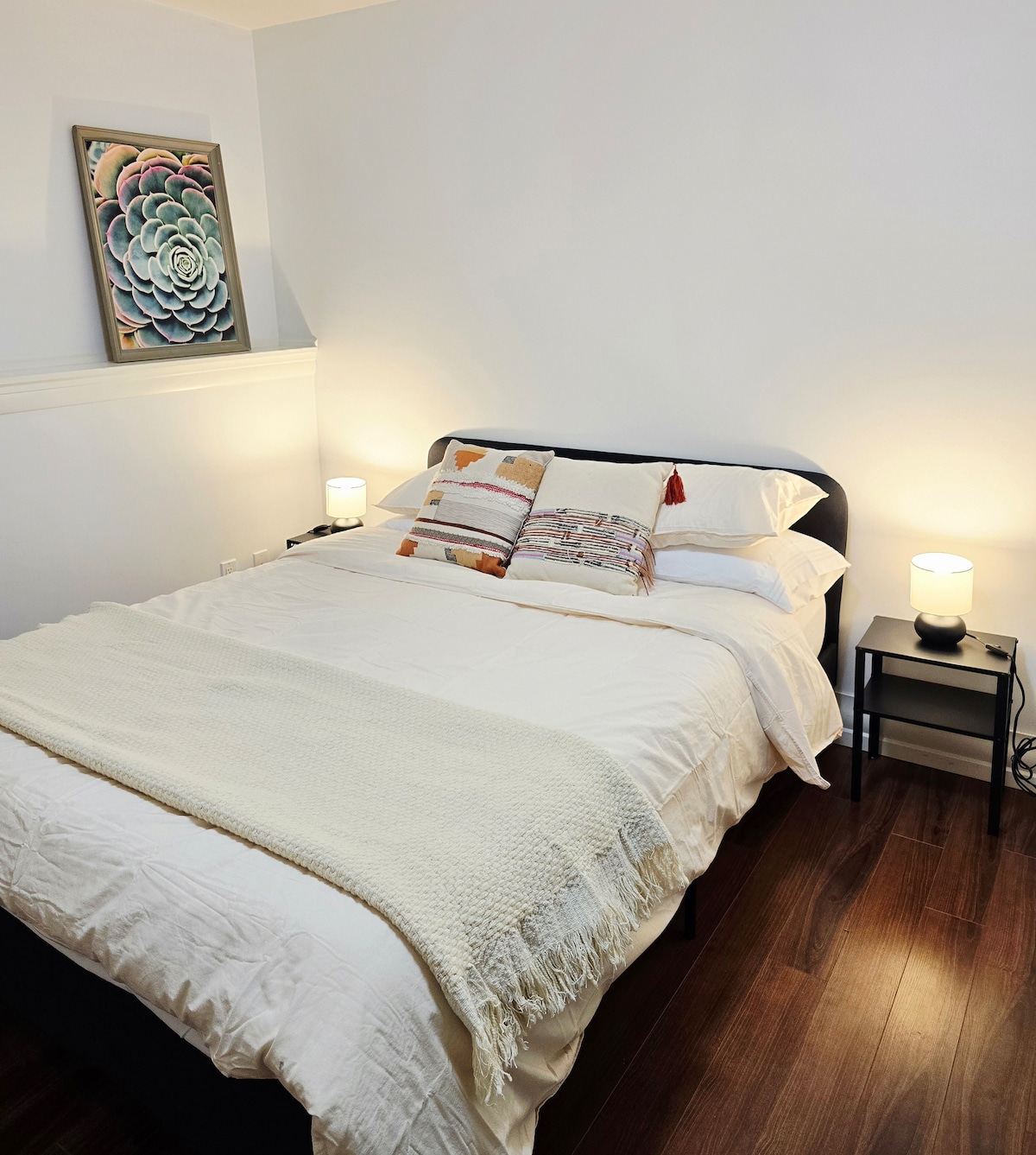 Step into comfort and style in this freshly built, beautifully designed basement suite with its own private entrance. Whether you're a solo traveler, working professional, or a small family on the go, this cozy hideaway is your perfect home base. With its warm vibes, modern touches, and efficient layout, it’s made for easy living and laid-back lounging. Kick back, relax, and enjoy a space that’s been thoughtfully curated to feel just like home - only better.