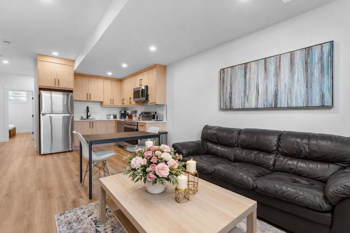 Unwind with the whole family in this peaceful and private walkout basement suite. Enjoy the comfort of your own separate entrance, a cozy living area, a bedroom with a queen-sized bed, in-suite laundry, and views of a beautifully landscaped backyard. The kitchenette comes equipped with an induction cooktop, microwave, and mini fridge—perfect for preparing light meals during your stay. Ideal for solo travelers, couples, or small groups—accommodates up to 4 guests.