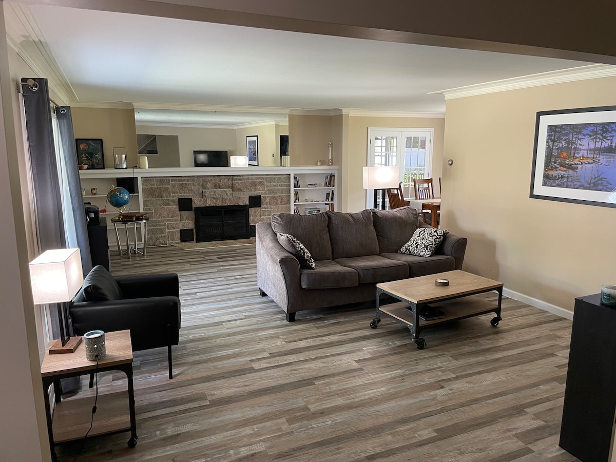 Come relax in our beautiful, spacious three-bed, three-bath home close to local wineries, breweries, and beaches. Enjoy our cozy entertainment room fully equipped with a bar, pool table, TVs, and fireplace! Out back, take a soak in the hot tub, unwind on the deck, or enjoy a nice warm fire at our built-in fire pit. For this reservation, we are offering the full main level of the house to smaller groups of up to six guests. The furnished basement will not be rented and will be locked. 25+ only.