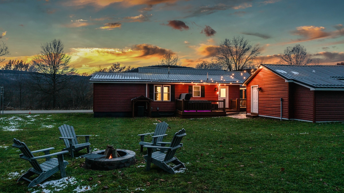 Kick back and relax in our peaceful, cozy space. We have a wooded area that surrounds the back and side of the house. Come and enjoy a warm fire up in the woods under the beautiful Hemlock trees, as well as the bubbling, steamy hot tub tucked under our pergola behind the house. Don't leave without experiencing the beautiful Allegheny National Forest that surrounds us in Warren County! Summer is so lush and green, with many outdoor activities! We hope to see you!☀️🌿