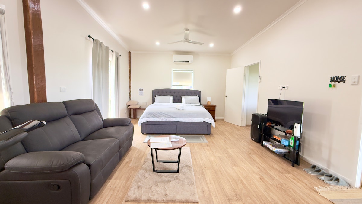 Welcome to our studio apartment. Our place is perfect for people coming for holiday, short term work , work placement or study. There's a brand new kitchen, comfy bed, study desk, air-condition and smart TV for your convenience. There is no washing machine in the unit, you will be able to use the one inside of the main house. (Please read the house rules there are some useful tips/information for you. Photo description also have some information.) Thank you :)