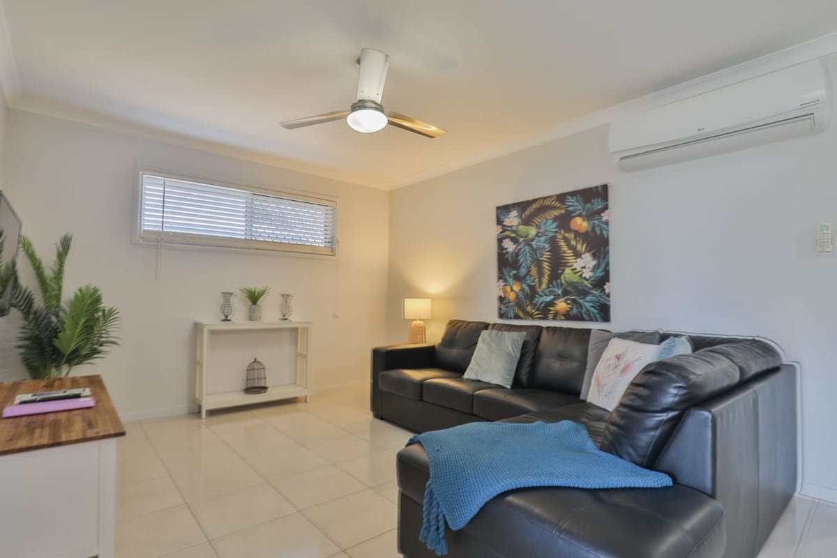 Dynamic pricing discounts for smaller groups! Please see our "Guest Access" section for more details Practical ground floor Unit with 2 Airconditioned Bedrooms, positioned right around the corner from Across The Waves Sports Club. The first unit in a complex of 3 units. The Carport doubles as a covered out door area in a quiet street ideal for parking larger vehicles. Security screened windows and doors with fans through out.