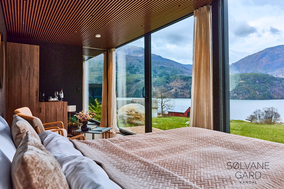 Welcome to our hotel suites at "Sølvane Farm Hotel" In the suites you will find a 180cm continental bed, a little lounge, a bathroom with a rain shower and a bathtub, and a minibar. The room has panorama windows and beautiful views! Breakfast is included. Ask if dinner is available. The concerts are at the barn during summer.