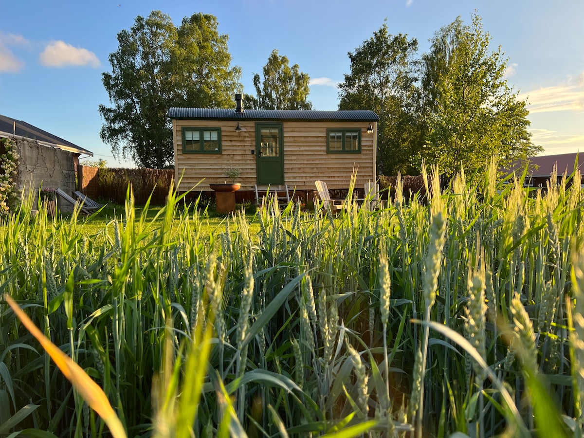Boho is a small, romantic shepherd’s hut on wheels, nestled in nature at Huser farm. Wake up to peace, open landscapes and the gentle rhythm of farm life. In the evening, relax in the sauna or book a private riverside jacuzzi for a magical moment under the open sky. Boho is perfect for couples seeking a unique, intimate and unforgettable escape.