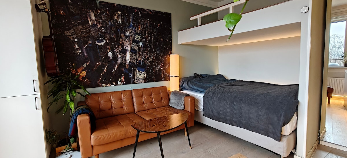 Leiligheten er et romslig loft. Her er detaljene designet av nordiske arkitekter, i en skandinavisk stil for koselige kvelder og arbeid. Stuen er stor og luftig med sofa og spiseplass. Her er det loftsvinduer og autentisk treverk i taket og heltre gulv. Soverommet er romslig med en stor komfortabel seng og en praktisk kjøkkenkrok. Alt du trenger skal være tilgjengelig :) Arbeidsrommet er godt designet for fokusert arbeid med bærbar pc eller lesing. Bøker tilgjengelig for å lese. Velkommen!