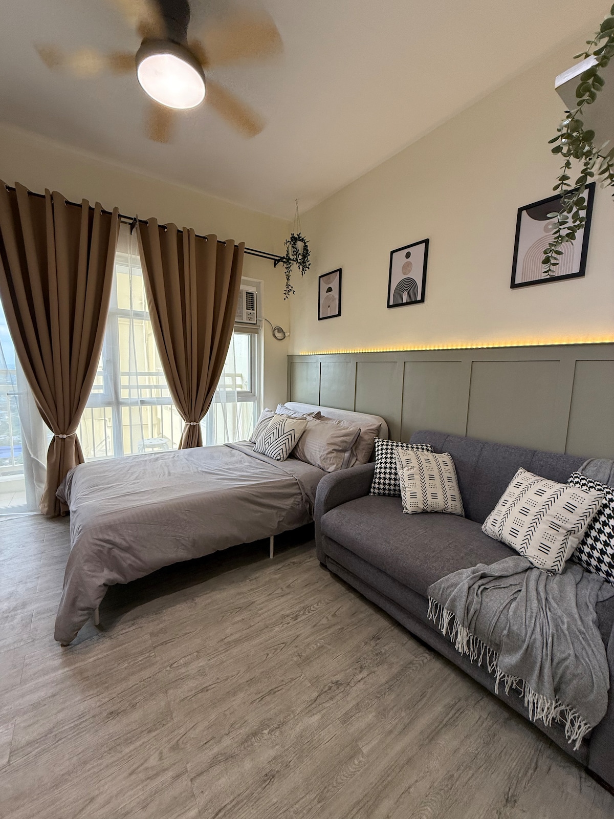 Experience the perfect blend of homey comfort and hotel-like luxury, where your relaxation, enjoyment, and comfort are our top priorities. Originally designed as a 2-bedroom condo, we've transformed this unit into a 1-bedroom suite with a balcony, offering a spacious living and dining area. Complete with household appliances, entertainment options, and gaming consoles, this fully furnished condo in Quezon City is available for daily, weekly, or monthly rentals, ideal for your next staycations.
