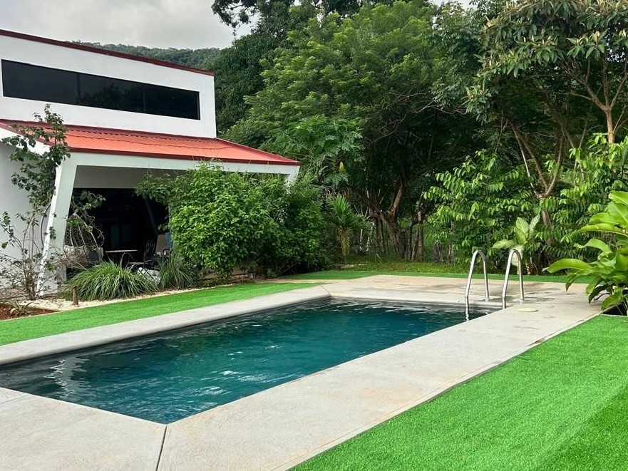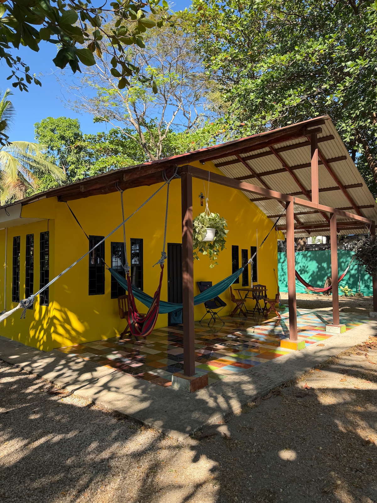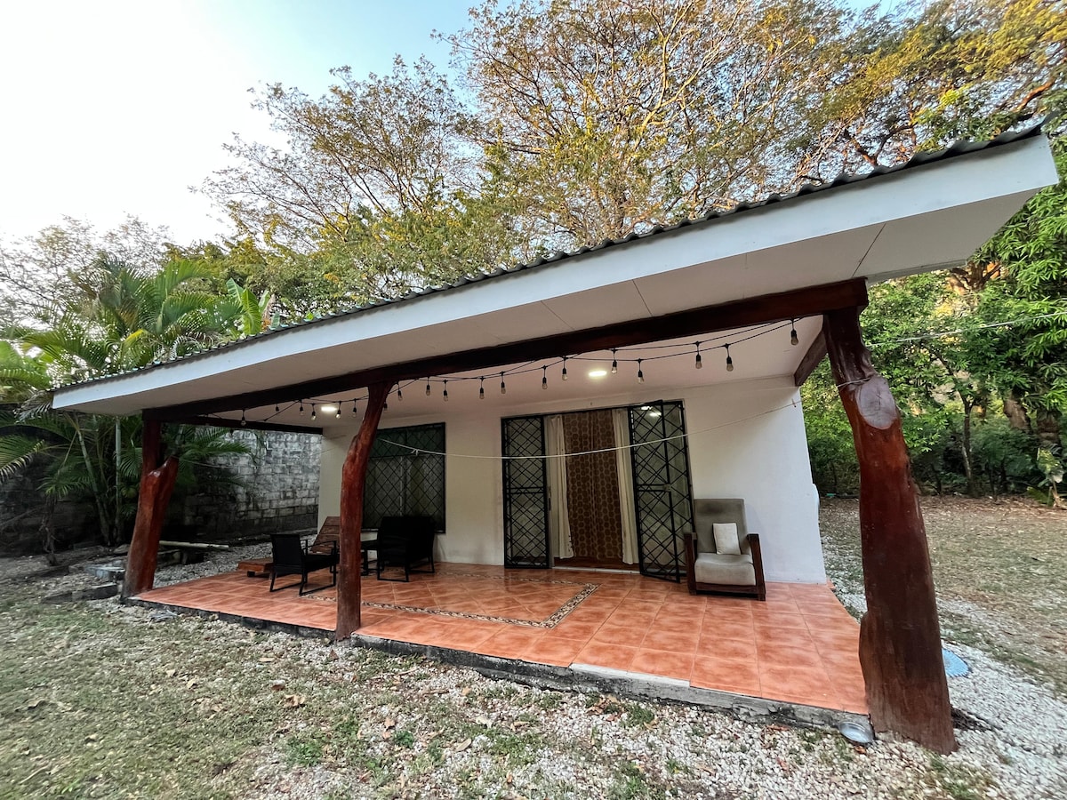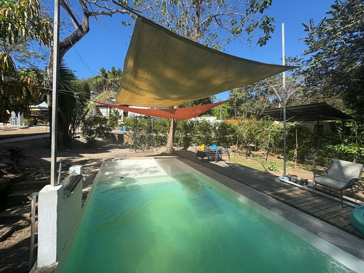 Lovely house just 2 minutes from Pelada Beach and 8 minutes from Guiones waves. Enjoy a tropical garden with palm trees, flowers, birds, squirrels, sometimes monkeys. you share the pool Steps away: Peperoni pizzeria, an Italian gelato shop, and the famous La Luna restaurant with stunning views—all within walking distance. On-site, enjoy homemade cuisine: fresh fish of the day and dishes made with love. Join yoga, martial arts, in our shala and dojo A private and peaceful place