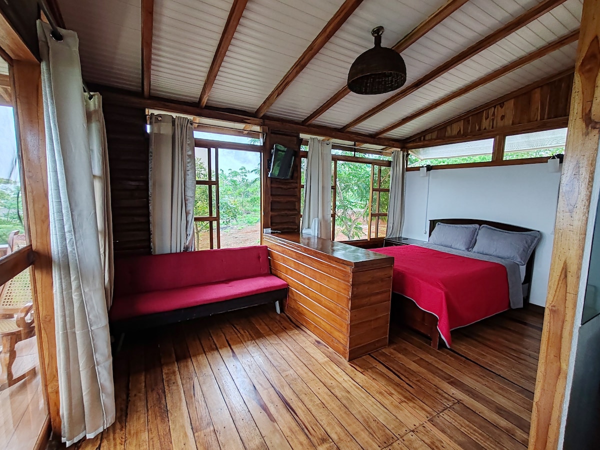 Cabaña de madera, totalmente amueblada, lista para estrenar. Nuestra cabaña está ubicada a 300 metros del centro de Hojancha donde se pueden encontrar todo tipo de servicios. A 35km se encuentra playa Carrillo, y a menos de 50km Punta Islita, el refugio de Vida Silvestre Camaronal, Playa Corozalito y Samara. Hojancha posee la catarata más alta de Centroamérica con 350 metros de altura, catarata Salto del Calvo se ubica a 14 km de la cabaña. La Zona es ideal para practicar senderismo y running.