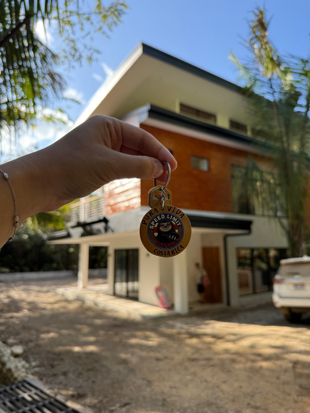 A spacious land nestled among fruit trees, Ceibos, and Guanacastes, our artistic abode invites you to unwind in a tranquil atmosphere. Adorned with handcrafted touches, this sanctuary blends rustic elegance and modern comfort. with one master bedroom and one kids room, This home is ideal for a family with young kids as it is walking distance to Wild Child Play Garden, 10 min. drive to Guiones beach, 7 min. to Pelada, and 10 min. to Ostional, a world renowned sea turtle breeding sanctuary.