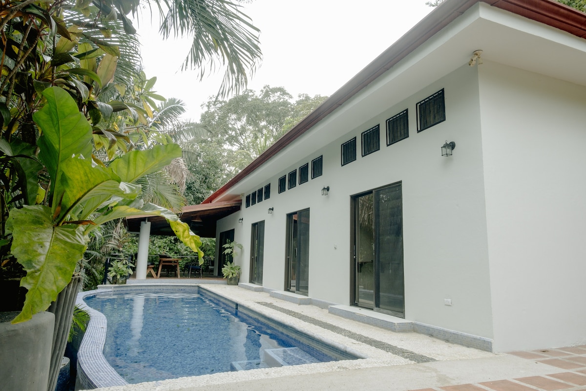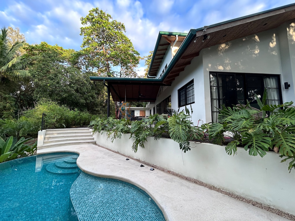 Balinese style home that accommodates 4 guests. Here on the property you can expect a quiet peaceful setting with howler monkey sightings & a true oasis in nature. We have a saltwater pool, outdoor shower, & sa a stone soaking tub. These are shared with my other house and bungalow. Walk the trail through the jungle and mangrove forest to the Nosara river mouth. Enjoy the beautiful pristine beaches of Guiones & Pelada with their unique beach town vibe and local boutique shops and restaurants.
