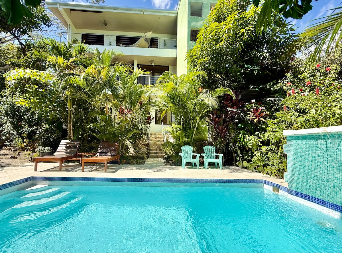 热带森林之家、泳池、距离海滩和城镇仅几分钟路程