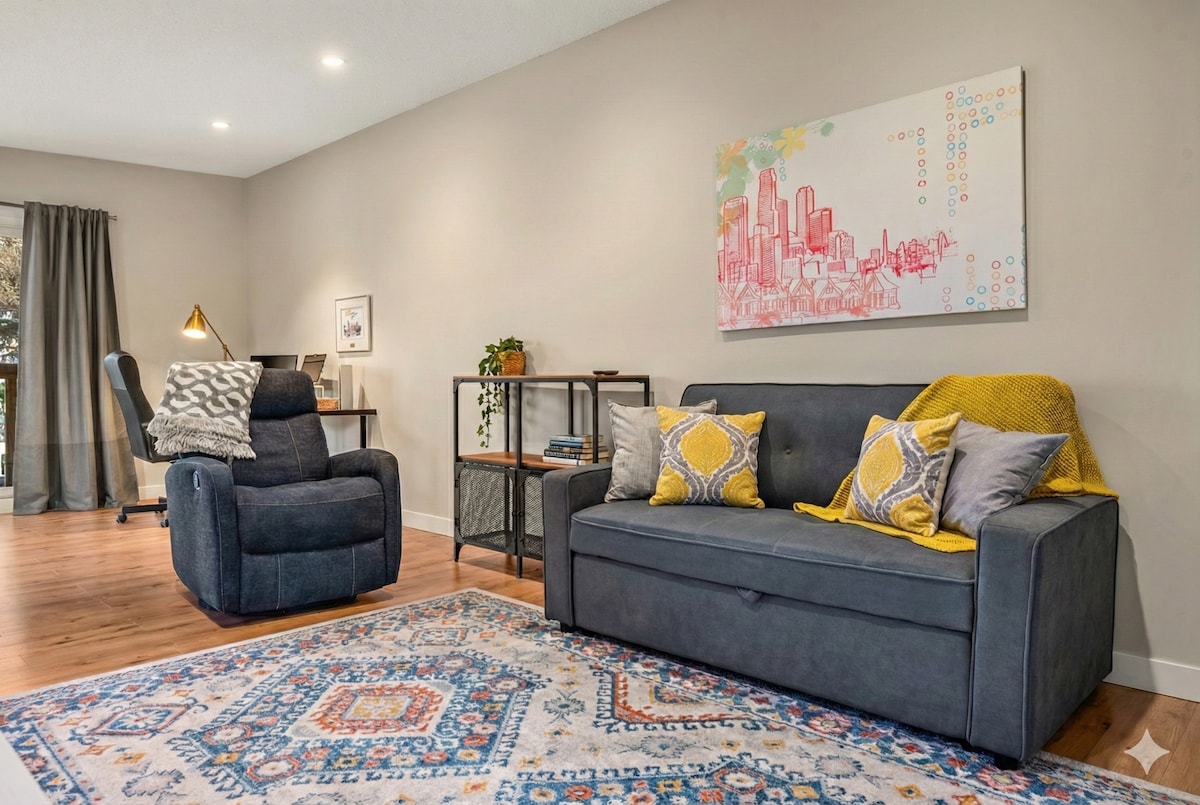 🏡 About this space Welcome to your bright and modern Calgary retreat! Just 10 minutes from downtown and the airport, our fully private suite offers comfort, style, and convenience. Ideal for city explorers, professionals, or adventurers heading to Canmore, Banff, Lake Louise, or anywhere else in the Rockies. Enjoy a private entrance, free on-street parking, a fully equipped kitchenette, a dedicated workspace, and premium amenities for a restful and productive stay.