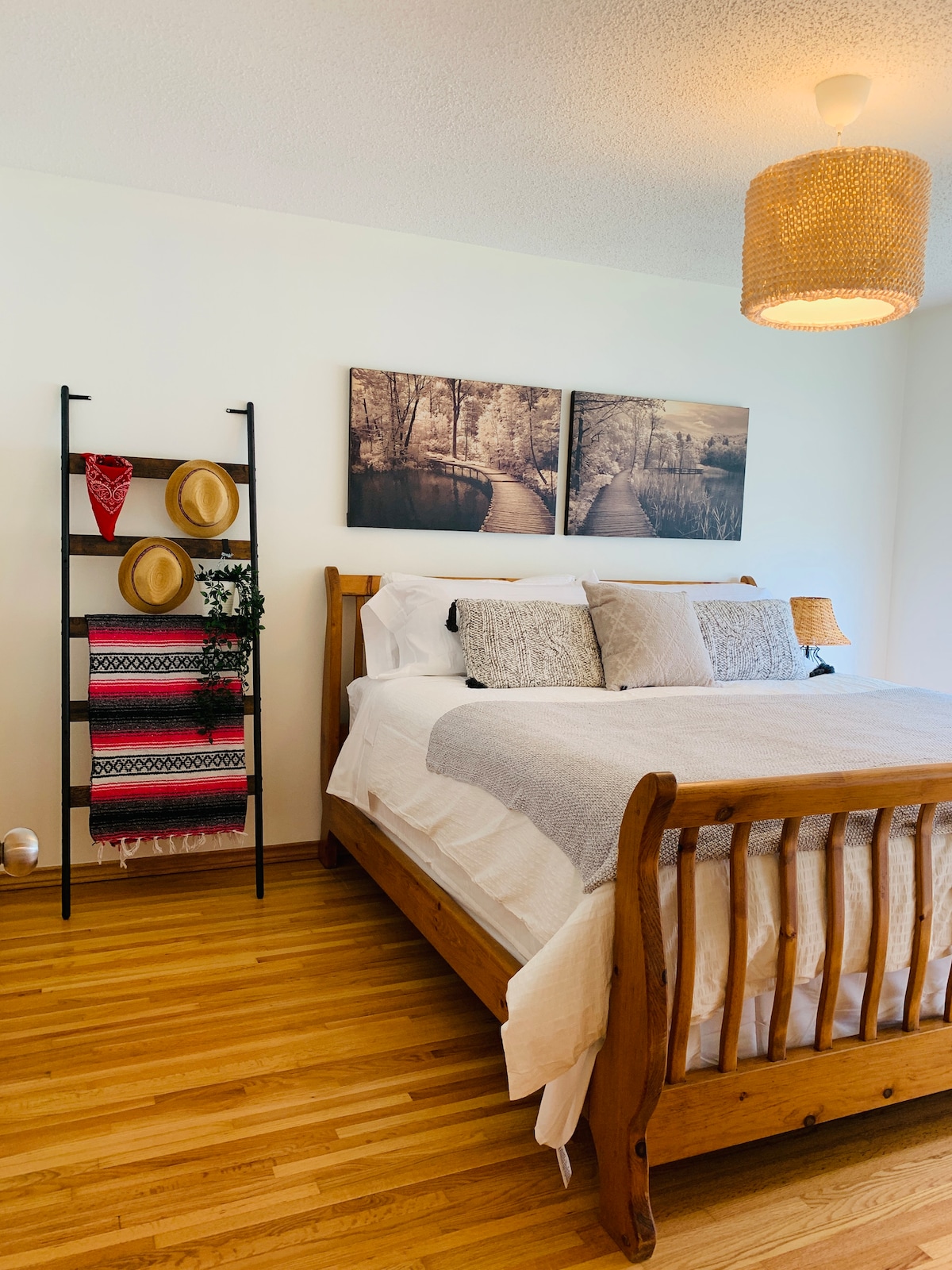 Enjoy a tastefully decorated condo, centrally located in downtown Calgary. The condo offers unique amenities such as; - Rustic Japandi Interior Design Theme done by a local Interior Designer. Each piece was selected with comfort, ease of use and design theme in mind - Offering unique amenities such as a rooftop pool, gym, underground parking, private patio and more - Fully functional kitchen, perfect for cooking - Three sleeping spaces (two queen beds + double sofa bed) - Cable + Hig