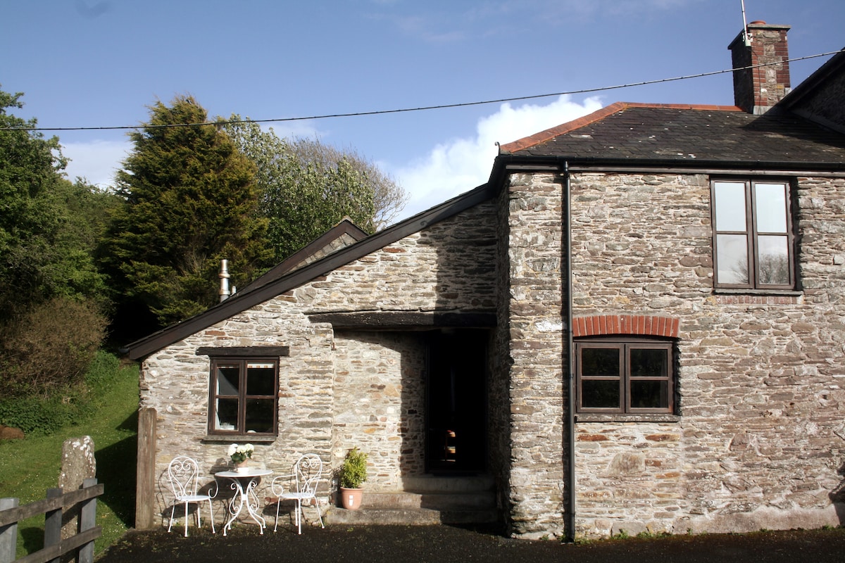 海景、温馨的康沃尔小屋、树林+2分钟到海滩