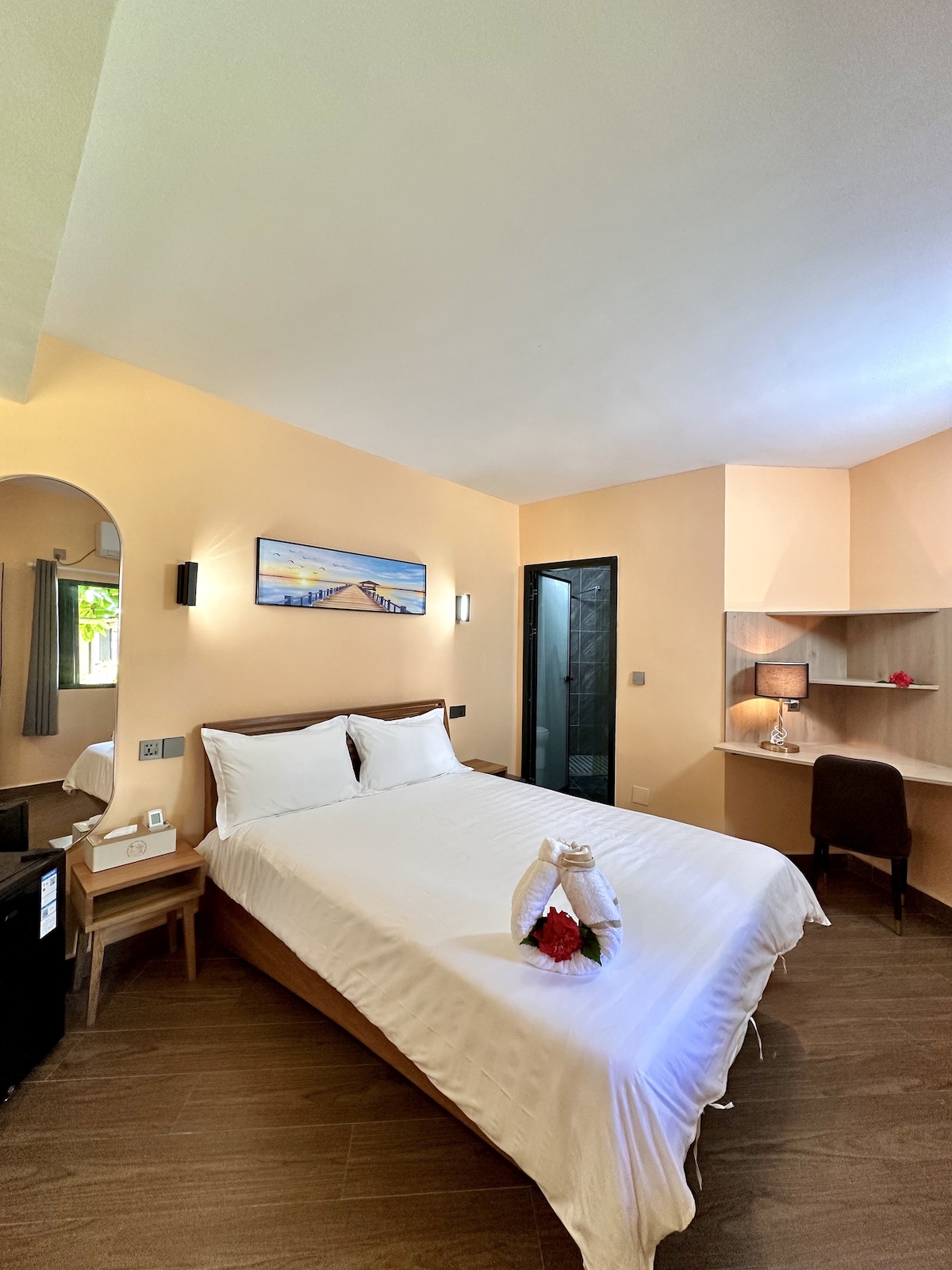 Bienvenue dans notre Chambre 10 au rez-de-chaussée avec balcon, idéalement située au cœur du village d'Ampangorinana. Cette chambre confortable vous offre un accès direct à la plage à quelques pas seulement. Bien que la chambre elle-même n'ait pas de vue sur la mer, vous pourrez profiter de la plage à quelques pas. La chambre est équipée d'un lit double avec matelas haute densité et d'eau chaude alimentée par des panneaux solaires.