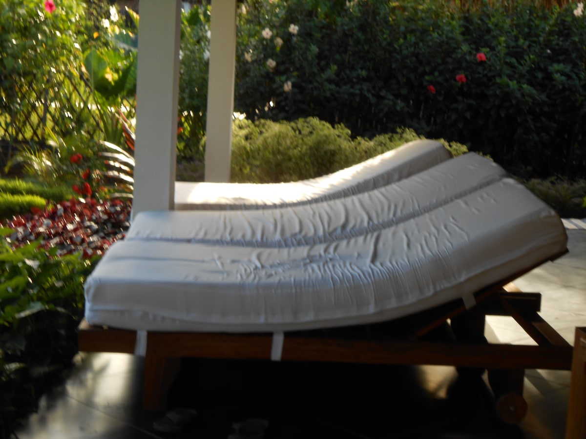 Cette villa dispose de trois chambres climatisées avec lit King size (180cm / 200 cm), chacune équipée d'un dressing, d'une salle d’eau privative avec douche, meuble vasque et WC, dont une avec un lit Bébé. Également une piscine au sel de 35m2, équipée d’assises, pour vous permettre de siroter un verre tout en profitant de la vue sur le jardin. Départ possible de toutes les excursions de la maison. Bateau, Quad, cheval...