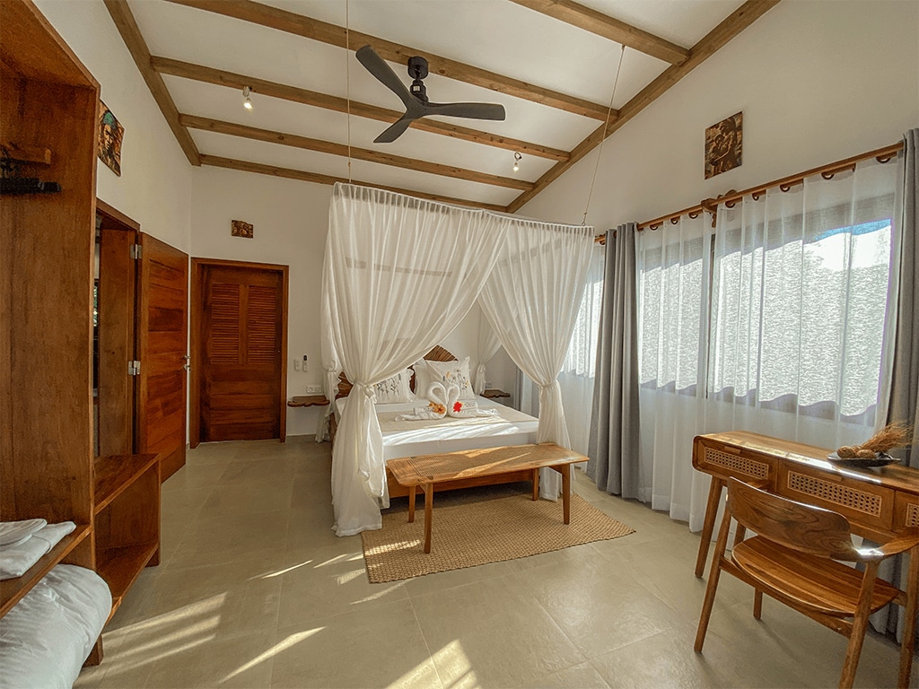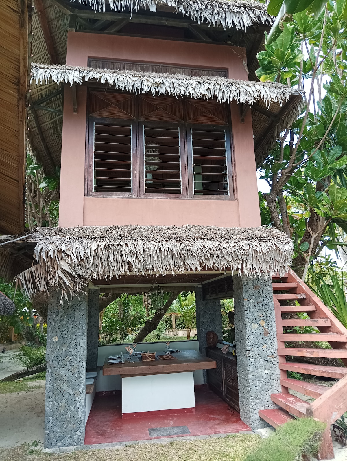 Villa Tahio is a REMOTE, sustainable tropical RETREAT on Sainte Marie, Madagascar, PERCHED on a HILLTOP with sweeping Indian Ocean views. This Swiss–Malagasy family villa offers PRIVACY and TRANQUILITY just 3 km from the airport, yet far from tourist crowds. It’s perfect for relaxing or exploring the island’s lush paddy fields, jungle trails, and villages, with a secluded turquoise beach only a 5-minute walk away.
