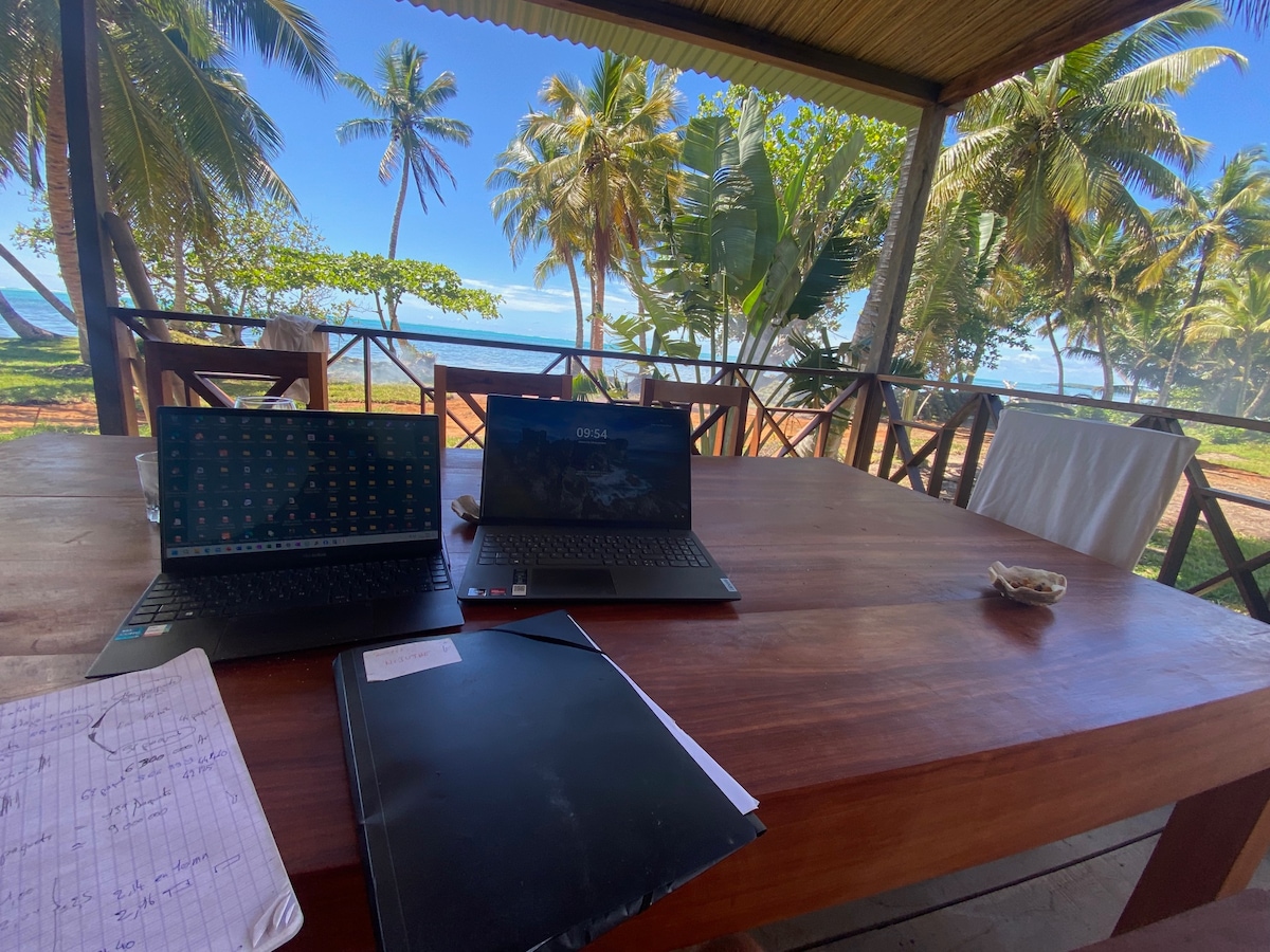 Lodge tropical de rêve avec piscine exclusive en bord de plage sans vis à vis. Sans aucun autre locataire que vous seul.Pas de propriétaire sur place. Découvrez ce somptueux hébergement de 90 m2 tout équipé, à l'île Sainte-Marie. Location indépendante au calme en PREMIERE LIGNE avec cuisine équipée, salon, WIFI, idéale pour des voyageurs autonomes, pour un court ou long séjour. Pieds dans l'eau : accès direct à la plage agrémenté d'un kiosque . Restaurant et petit marché à 1500 mètres.