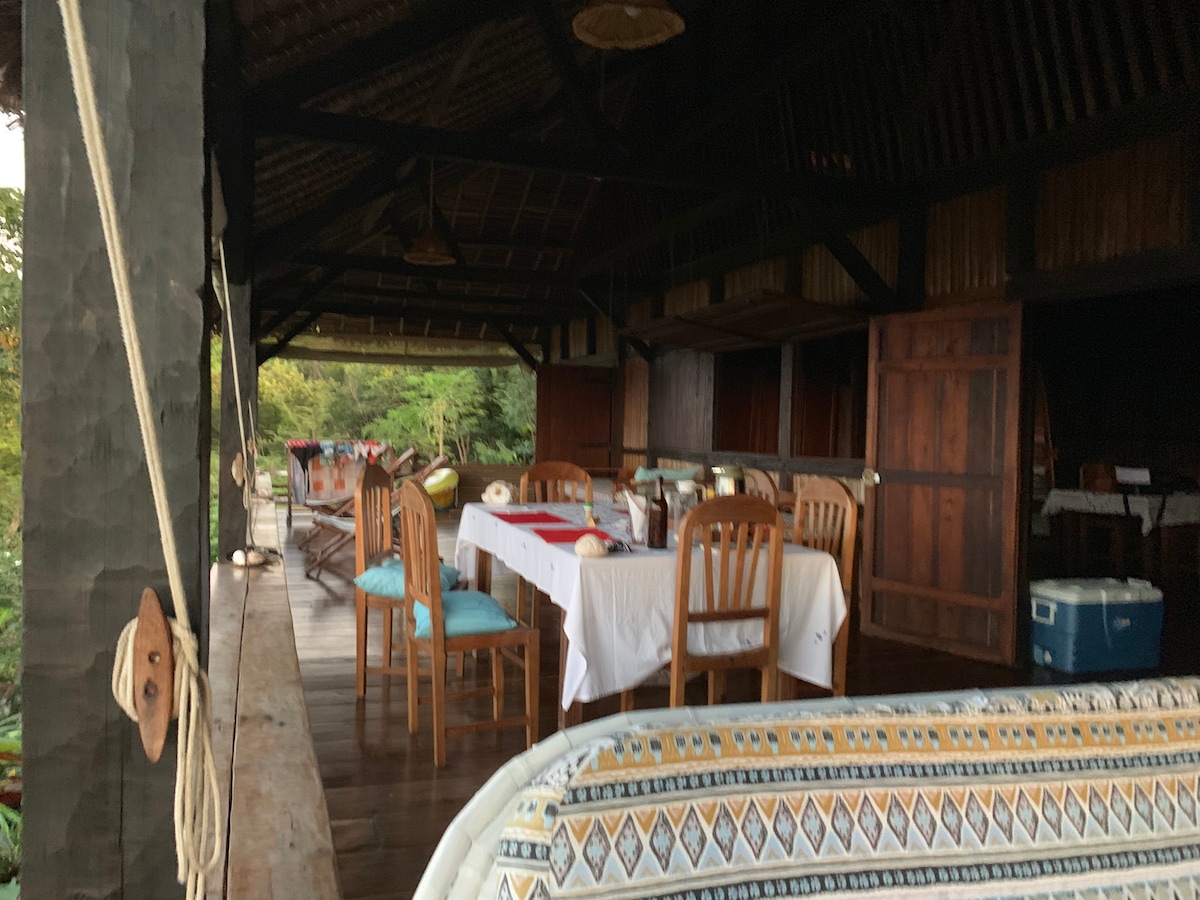 Magnificent Ecolodge of Exception entirely private and exclusive. Ideal for a couple, a family, or a small group of friends. An architectural design of 450 m2 unique in its kind and well-being assured! Spacious, voluminous, refined Malagasy decoration, with very open spaces offering an incredible panoramic sea view. Built of precious wood and natural stones in the heart of huge Jurassic rocks in the middle of the rainforest populated by lemurs.
