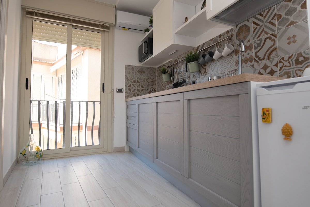 The Sicilian Balcony is an independent unit, ideal for 1-2 guests. Perfect for couples or for remote workers (SMART WORKING). Features 1 room with a balcony and a private bathroom. Includes a Queen bed with quality linens, complimentary toiletries, A/C, and Wi-Fi. Equipped kitchenette: refrigerator, coffee machine, and kettle. BREAKFAST ON THE BALCONY: Artisanal croissants, coffee, and tea are provided in the apartment. Free parking is available in the public square opposite the house.