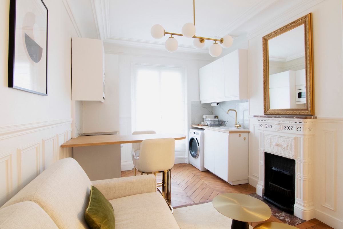 Charmant T2 haussmannien rénové avec des prestations haut de gamme. Alliant modernité et charme de l'ancien (moulures, parquet point de Hongrie), cet appartement optimisé offre luxe et confort. Situé au 4ᵉ étage d'un immeuble bourgeois, à proximité de Bastille et Gare de Lyon, il est idéal pour une escapade romantique, un séjour d'affaires ou un voyage découverte. Profitez d’un cadre élégant, comme une chambre d’hôtel, avec la liberté d’un véritable chez-soi.