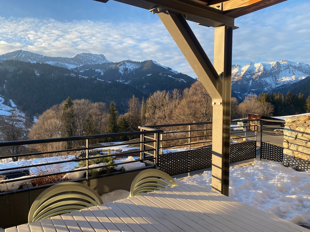 迷人的老式木石度假木屋,可欣赏勃朗峰的美景