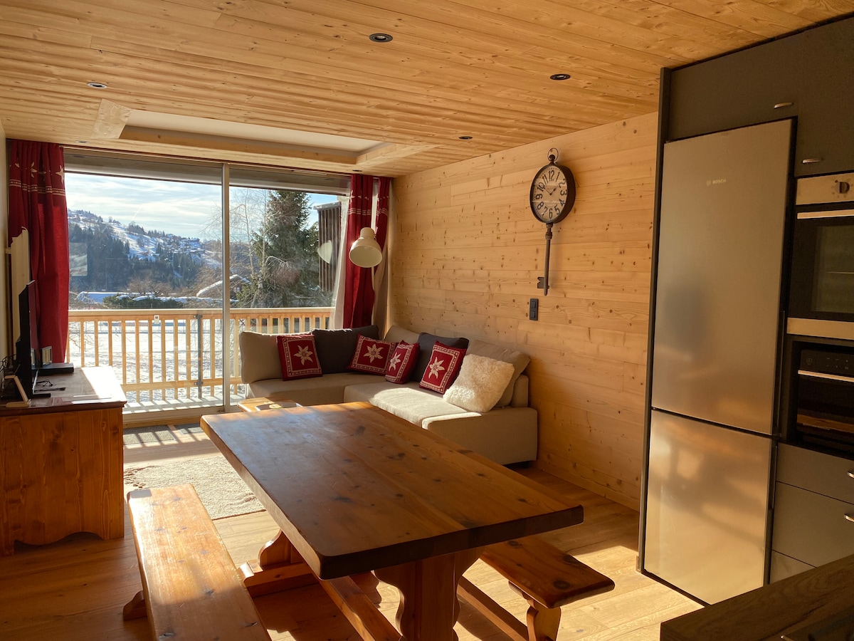 Votre BOULE DE NEIGE , Agréable appartement au 1er et dernier étage d'une résidence de standing, dans le charmant village de Notre Dame de Bellecombe, possibilité de tout faire à pied durant votre séjour. Belle surface de 50 m² avec 2 chambres, 6 personnes. Balcon terrasse avec vue exceptionnelle sur les masifs des Aravis et du Mont Charvin. Le charme de la cheminée pour vos apéritifs au coin du feu... Casier à skis et GARAGE privatif , idéal pour laisser votre voiture ou vos vélos !