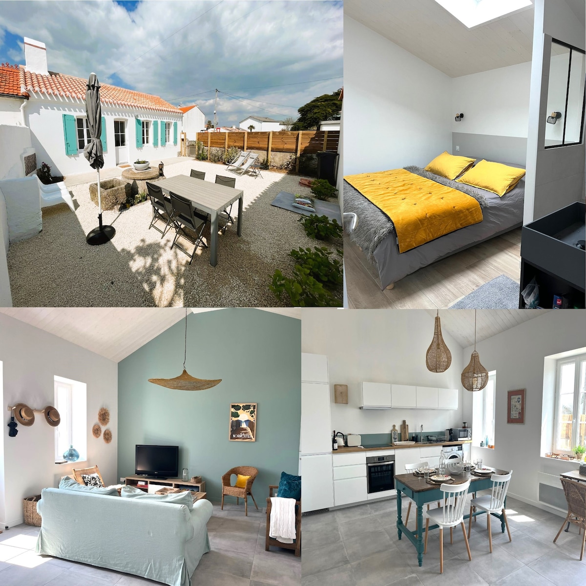 Logement classé de Tourisme Nous vous proposons une maison pleine de charme fraîchement rénovée en 2019 pour vos vacances et weekends. Elle est faite pour un séjour en famille ou entre amis. Votre animal de compagnie est aussi le bienvenu car le terrain est entièrement clos. Elle est idéalement située face à la forêt, à 300 mètres de la plage et 150 mètres des commerces. Notre Dame de Monts est à 15 km de l'île de Noirmoutier, 15 km embarcadère pour l’île d'Yeu, 30 de St Gilles Croix de Vie