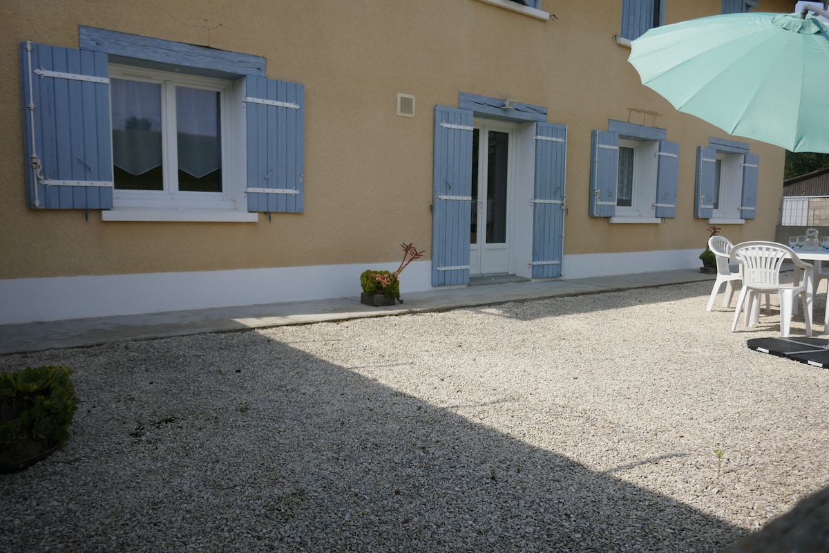 Gîte rustique, avec 2 grandes chambres, salon chaleureux, une cuisine équipée, salle de bain et wc séparés. Envie de vous détendre après le boulot ou de passer un bon moment en famille, avec des amis. Ce gîte est fait pour vous. Profitez du jardin et de la terrasse couverte pour une pause en plein air. A côté des commerces, activités de loisirs, proche des sites touristiques.