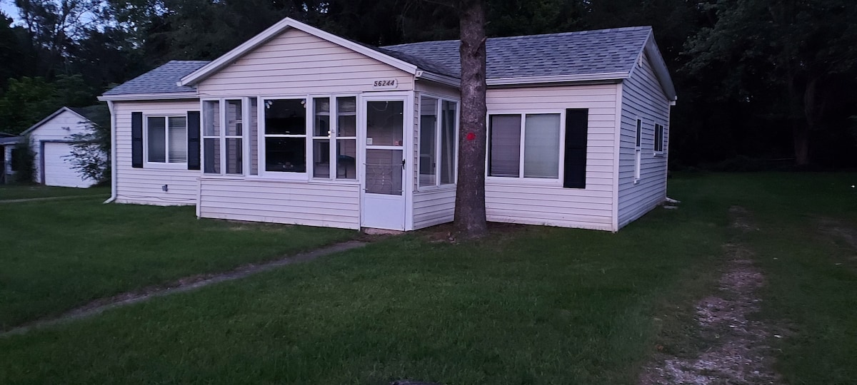 Cozy cottage fully renovated tucked into a beautiful park-like surrounding. Near to Notre Dame, South Bend, Lake Michigan Beaches, and wine trails. Relax here on your own patio. Luxuriate in the huge new shower. This darling two-room tiny house with a kitchenette has the conveniences and comfort you want for a short stay. The queen bed sleeps two while the couch in the main room is deep and can sleep another. Wifi and Roku enabled. Perfect little getaway!