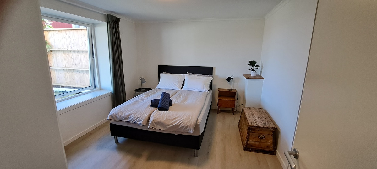 Ta med familien eller venner til denne romslige leiligheten med flott beliggenhet i sokkeletasjen av huset vårt. Her er det badeplass rett på nedsiden og gå avstand til både Nøtterøy Golfbane og tur terreng samt kyststien. Kiwi, bensinstasjon og god bussforbindelser til Tønsberg og Tjøme er rett ved. Det er 2 soverom, en med dobbeltseng og sjeselong ( passer for et barn å sove på) og en med 2 enkeltsenger som kan settes sammen. Stua og uteplassen er vestvendt med sjøutsikt og er solrike.
