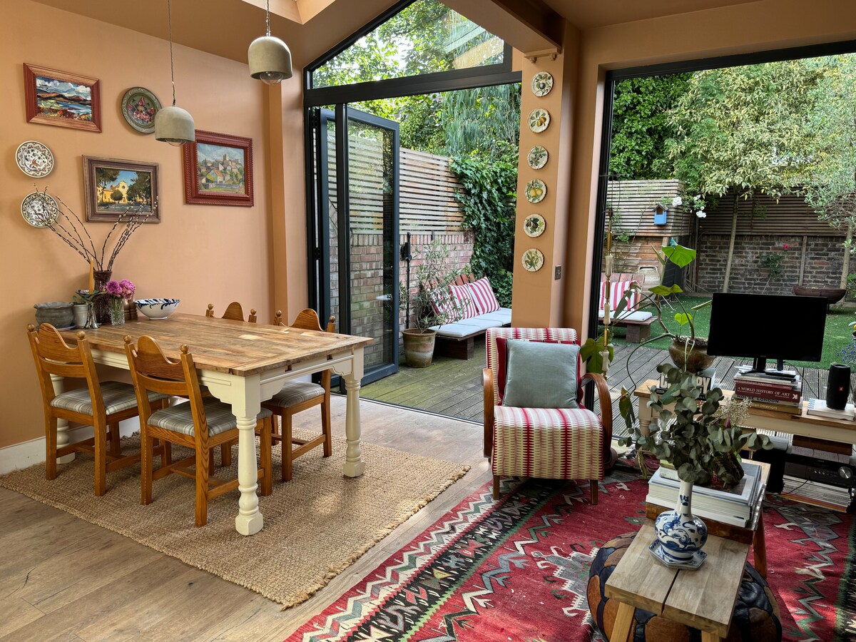 Our garden flat is perfect for a family or a mature group of friends. It can sleep up to five guests as we have a chair bed in the office area. Our flat is in trendy Kensal Rise, close to Portobello market, where there are plenty of bars, restaurants and shops close by. It's a couple of minutes walk to the overground, a ten to fifteen minute walk to Queens Park tube and there are lots of buses running into the centre from the end of the street.