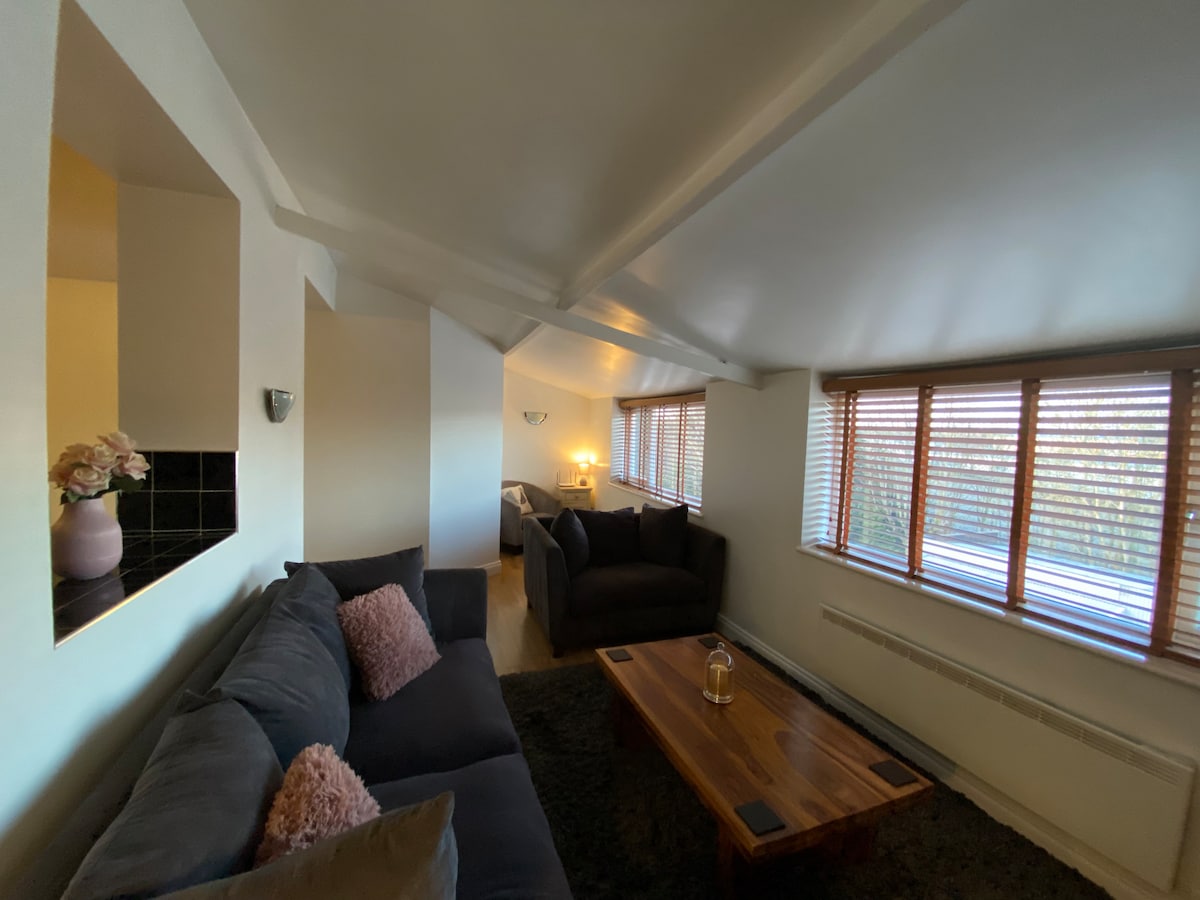 A stunning loft apartment in the centre of a Derbyshire village. Free parking on site and off road parking with private access to your accommodation. A lovely en-suite bathroom with bath and shower adjoins the bedroom and a cosy sitting room beyond. Gastro pubs, bars and restaurants moments from the doorstep. Within easy reach of Alton Towers, Chatsworth, Kedleston Hall, Crich Tramway, and the Derbyshire Peak District.