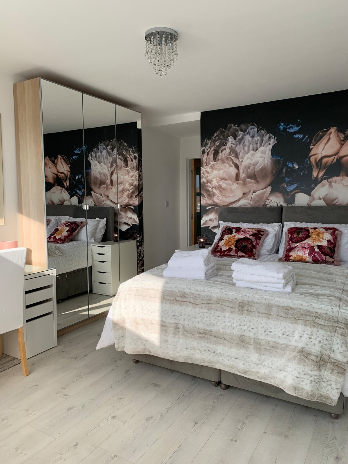 THE LUXÉ Stunning 2 bedroom flat up high in the private park estate. Amazing views high up across the estate a truly peaceful place for a city break. Beautifully styled to a high standard with everything you need for a short stay in the city for work or pleasure. Only a short walk into the city centre for all the centre attractions. Including the Michelin star restaurant alchemilla being a 3/4min walk across the road. With great links for work around the city right on our doorstep.