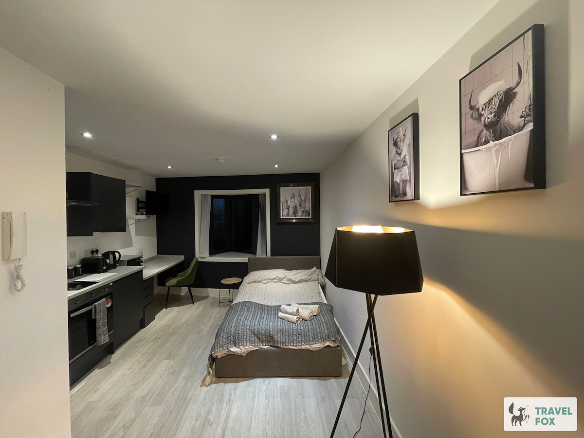 诺丁汉市中心单间公寓。(最多可供2人入住)