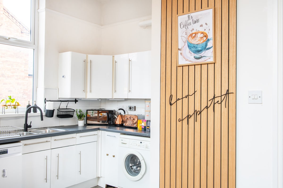 Prime location, just a minutes walk from the train station and 5 mins from Nottingham's shops and bars and restaurants. The apartment is modern, clean and bright and has everything you need for a comfortable stay in Nottingham. Sofa bed in living area, allows for 4 guests comfortably. The apartment comes with everything you need from a home-from-home. Flexible check in allows for stress free arrival and check out, reducing the demand to arrive at a certain time.