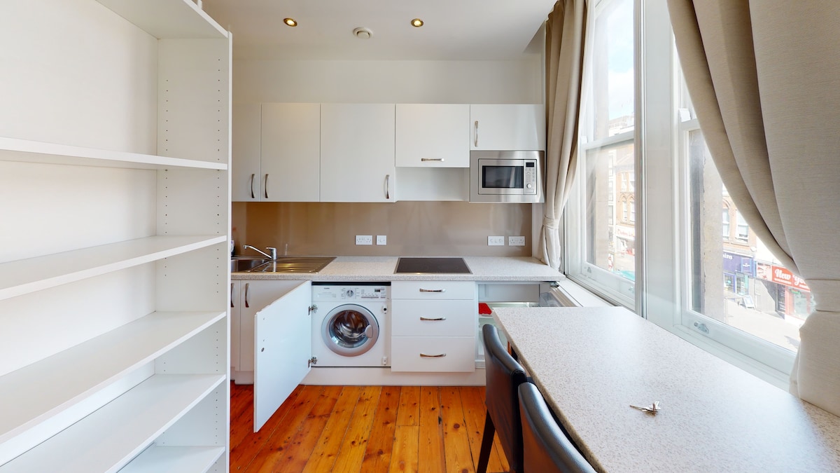 A modern studio in a beautiful listed building in the heart of Nottingham City, 100 m from the Victoria Centre, 200 m from Market square. Close to tram, bus, train and Euro car park. It is equipped with a high specification kitchen including AEG hob, washer / dryer, fridge with ice box and grill microwave. It has a double bed, small sofa, 4k smart Samsung 40" TV swivel mounted, fast internet, bar table with leather bar stools. Easy check in using a key safe.