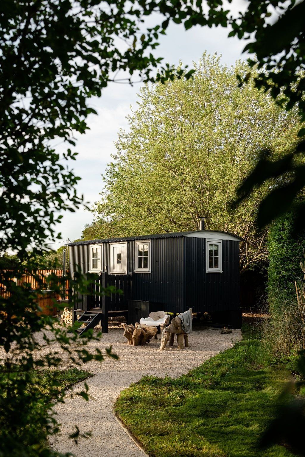 Situated on three acres of grassed field alongside a wild flower meadow, the hut offers a peaceful escape for those seeking a blend of rustic charm and modern comfort. Hand-crafted from scratch by your host Dave, this shepherd's hut boasts a generous 9ft by 22ft footprint, larger than a standard shepherd’s hut. The hut offers the best of both worlds – a tranquil escape surrounded by nature, yet with the convenience of a village pub just a stone's throw away.