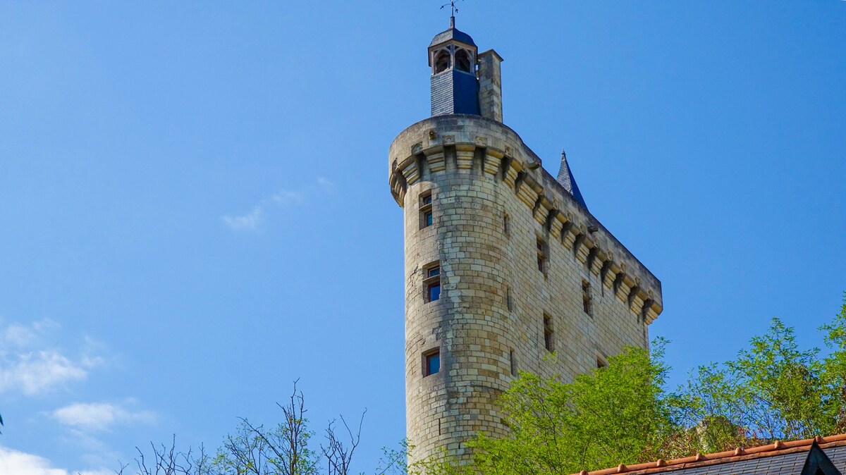 You'll be staying at the foot of the Royal Fortress of Chinon. Located in the heart of Chinon's medieval old town, our studio is a clean, bright, quiet place on the ground floor looking out onto a flowered garden where you can relax during your stay. The studio has a fully equipped kitchen and dining area, bath with a shower, a double bed, a large, comfortable sofa, WIFI, and TV. Just outside the windows is a garden area with both sun and shade and tables available for you to enjoy.