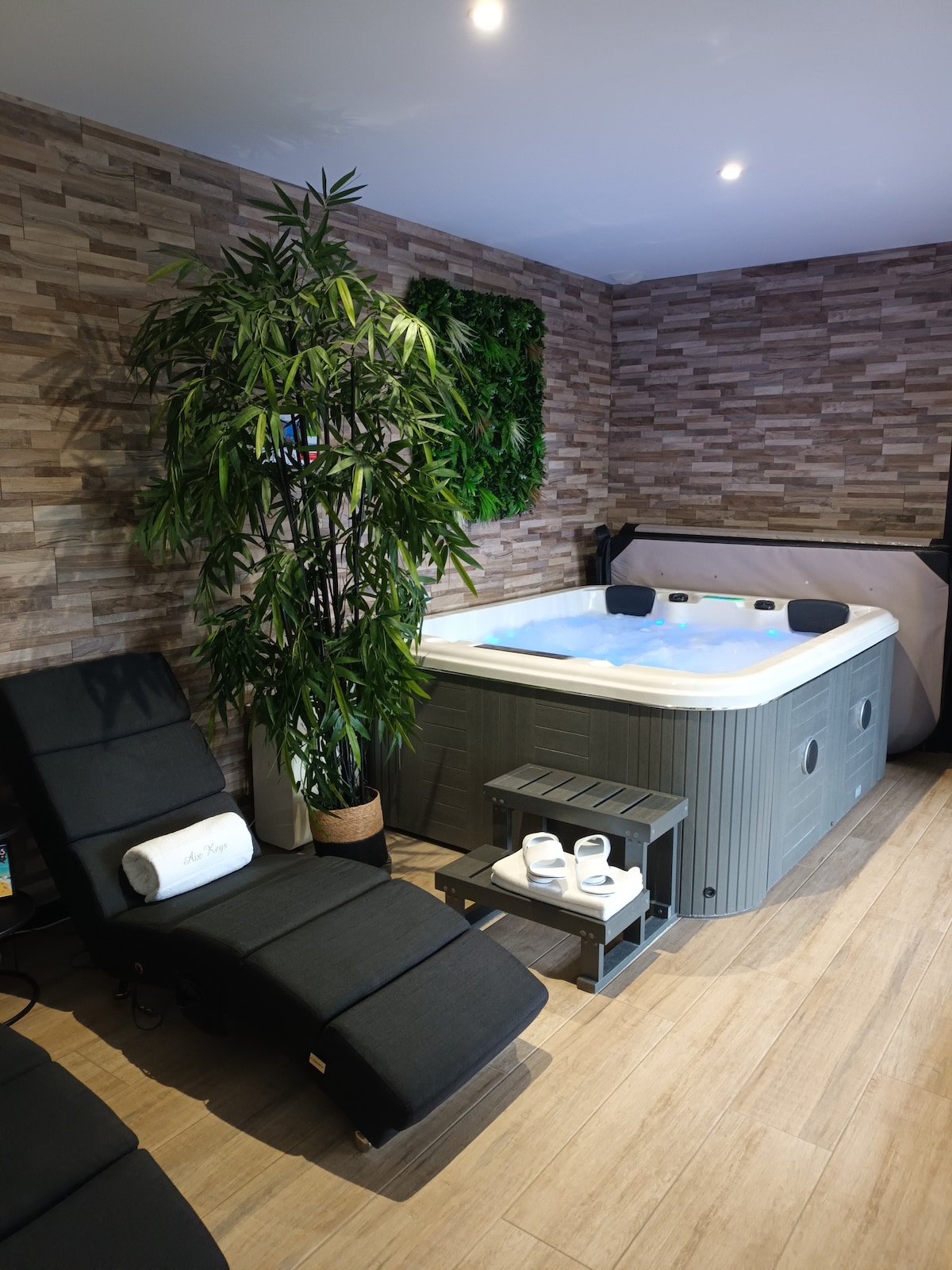 L'ensemble du logement, du spa, du sauna, du hammam, de la terrasse et la piscine n'est pas partagé avec d'autres personnes. Équipements utilisable toute l'année : Grand Spa Jacuzzi couvert T° réglable de 30° à 40°, hammam, sauna. Terrasse sans vis à vis. Piscine de 14 mètres chauffée de début mai à fin octobre. Le tarif affiché inclus le ménage ainsi que la fourniture des draps, serviettes et peignoirs. Location strictement limitée à 2 adultes et 2 enfants (aucuns invités ne sont autorisés)