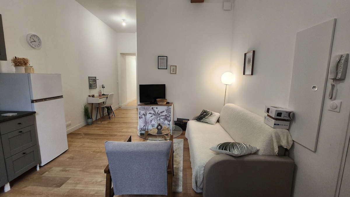 Stylish ground‑floor one‑bedroom apartment offering full independence at the foot of a charming, typical Pilat house, surrounded by peaceful pine trees. Rated 3* tourism lodging. Perfect for a couple, with space to host a child in the living area. The area’s most beautiful beaches, thalasso and golf just 2 km away. Free bikes, optional e‑bike rental on-site. Shops 800 m away, Baïa bus 50 m away. Your host can pick you up if arriving by train. Relax... and share the garden with the squirrels!