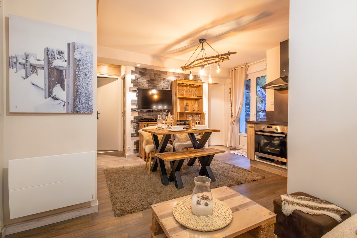 Venez profiter d'une expérience ressourçante au sein de la Grange du Père Émile, nouveau chalet de village, dernière née des Granges Deth Pouey. Vue absolument panoramique de toutes les pièces et du jardin clos, ainsi que du sauna et de la douche extérieure. Dépendance sécurisée pour les vélos et skis. Clim dans toutes les pièces. 2 chambres avec chacune sa sdb. Logement spacieux pour 4 personnes. Lit de camp d'aventurier pour un enfant (5p). Chargeur V.Elec. Prestations de très belle qualité.
