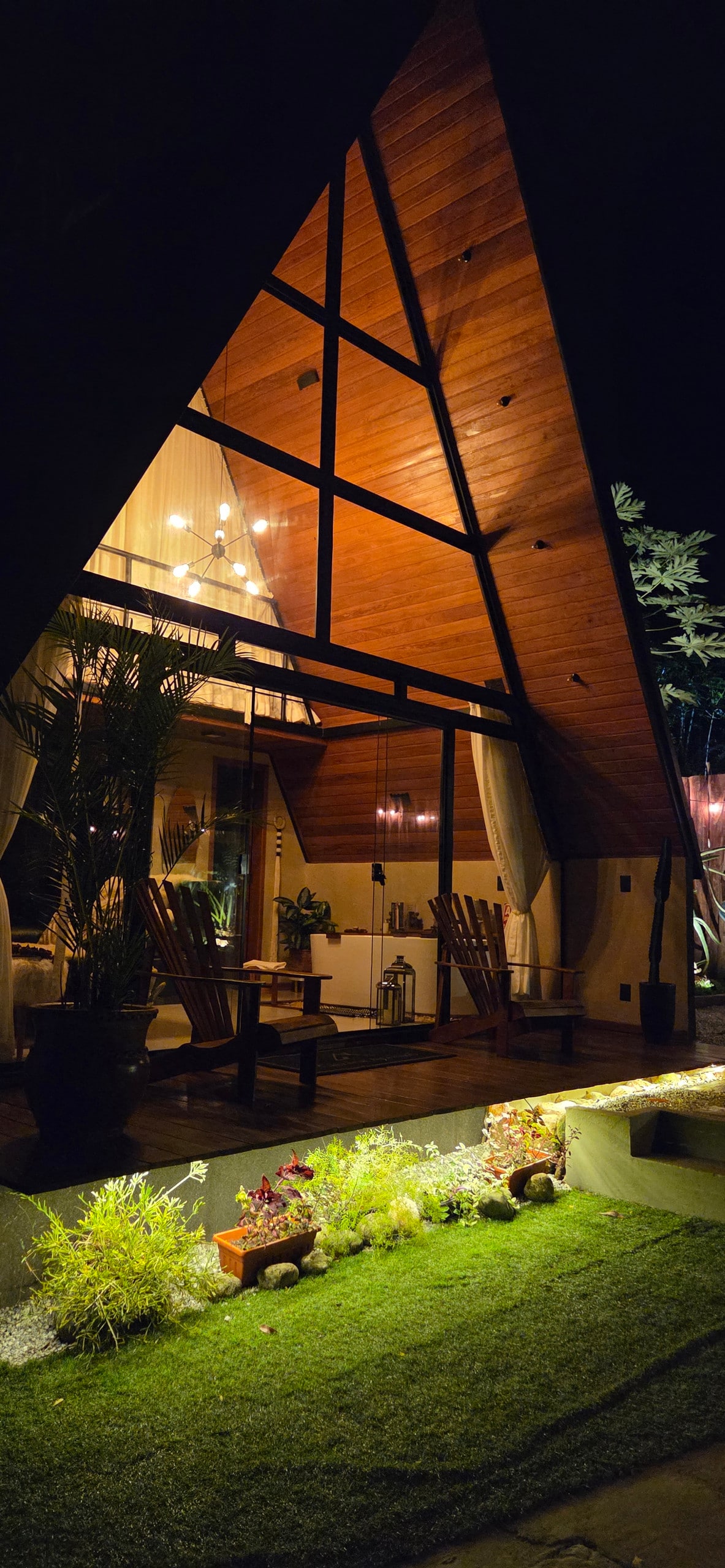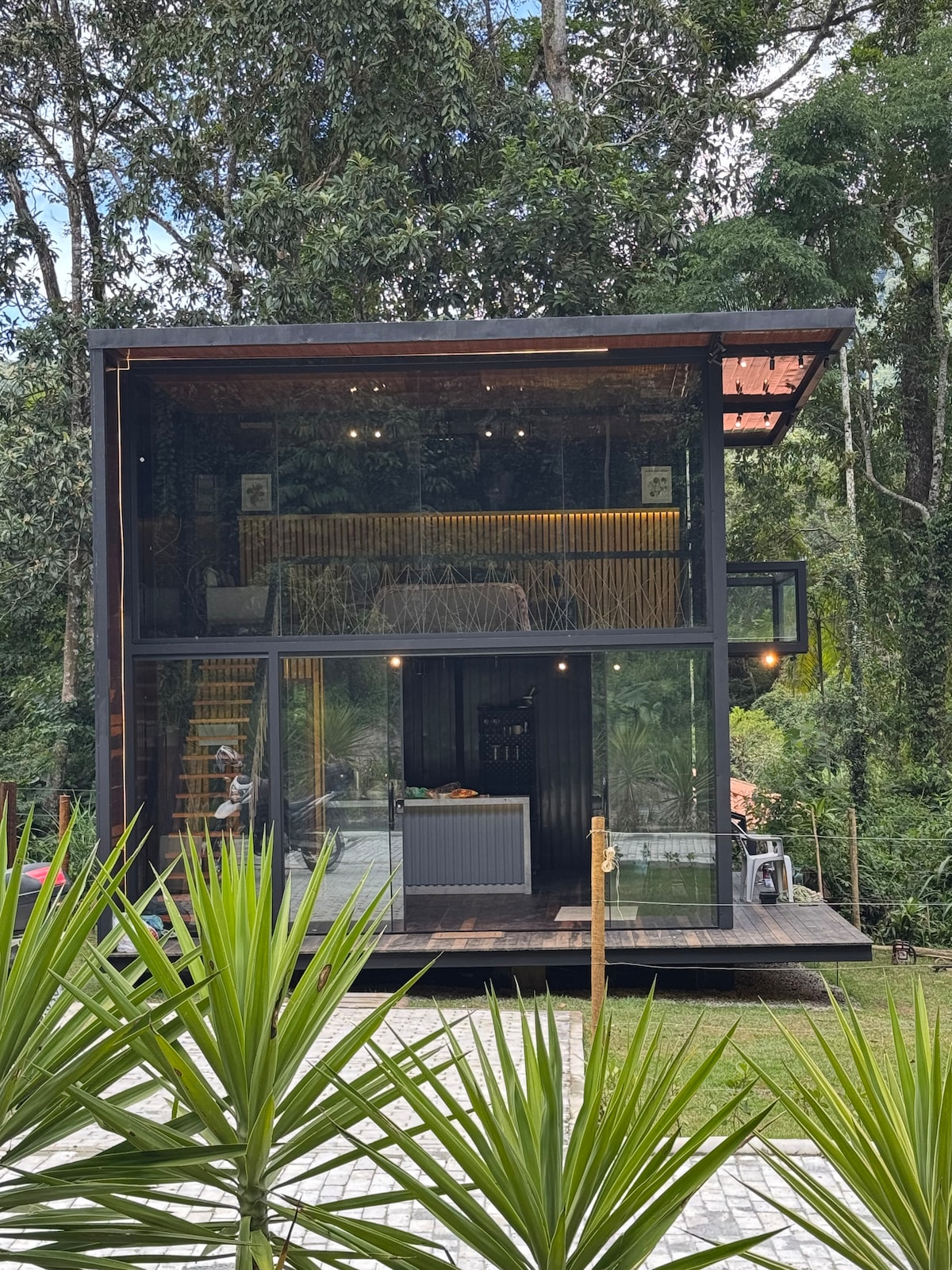 Cabana estilo A-frame localizada em Lumiar, distrito de Nova Friburgo. Com ambientes integrados, o espaço conta com sala de estar com pé direito alto, lareira , área de banho com hidromassagem/cromoterapia vista para mata e teto de vidro, cozinha completa, mezanino no segundo andar ( acesso por escada Santos dumont ) e cama queen, varanda em deck com piscina e rede suspensa, ideal para relaxar ao som dos pássaros e contemplar a natureza.
