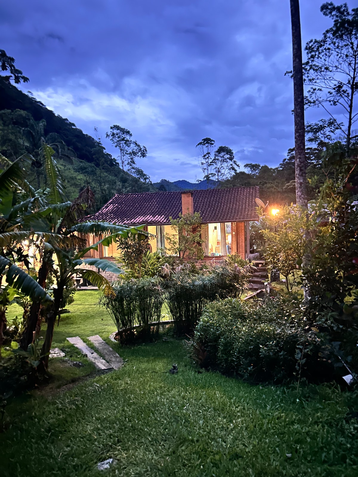 Chalé aconchegante para 4 pessoas , afastado 10 km do centro de Lumiar , num vale encantado , cercado de muito verde e com o Rio Bonito passando bem em frente. Equipado com quarto, sala integrada com cozinha , banheiro e boa área de lazer. Ideal para quem gosta de sossego e aproveitar a natureza em sua plena forma . Está situado no sitio Sunyata onde se cultivam orgânicos dentro de uma agro floresta. A área faz parte da mata atlântica , com água de nascente , trilhas e bons passeios a partir rio
