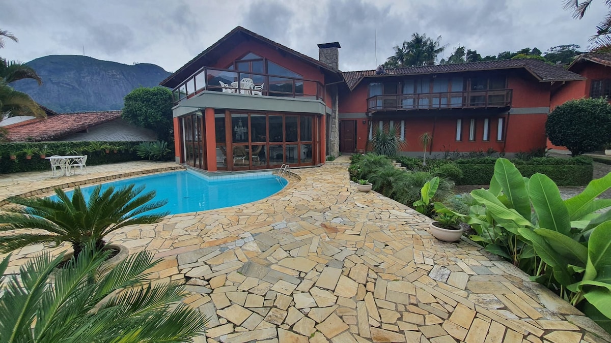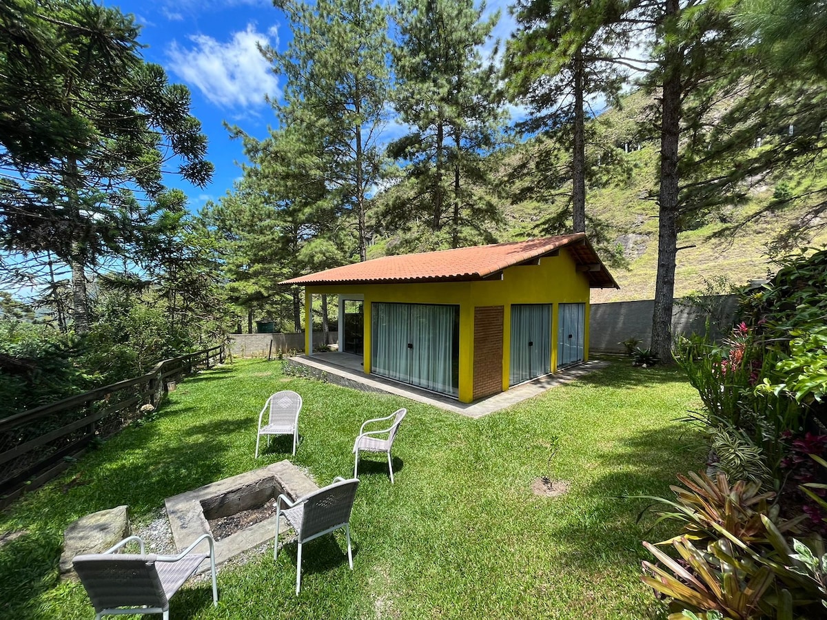 Lugar ideal para se viver dias inesquecíveis em meio a natureza a apenas 4,5km do Centro comercial, gastronômico e turístico na cidade de Nova Friburgo/RJ. A casa é equipada com cozinha completa (fogão, forno de micro-ondas, geladeira, liquidificador, sanduicheira e utensílios em geral...), wi-fi, sala com smart tv, quartos aconchegantes, estacionamento próprio e amplo espaço gourmet com churrasqueira com espeto, grelha, tábua e faca, tudo isso em meio a jardins e vegetação de reserva natural.