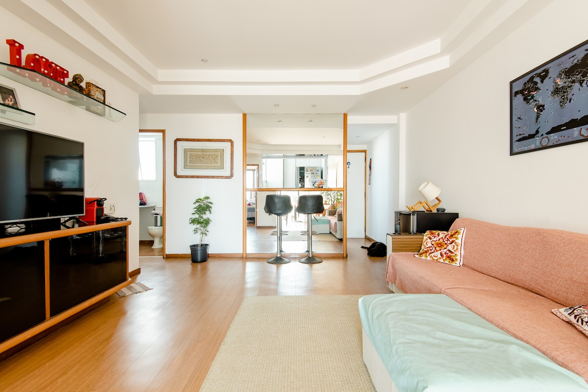 Comfortable, quiet and modern apto (73 m2) located in downtown Rio de Janeiro at Glória, with beautiful view of extract Santa Teresa Florest. It has one bedroom with double bed, one living room with a bed sofa (single or couple) , and additionally it has more two single mattresses that fits perfectly on the floor of the bedroom or living room, accommodating up to 5 people. Large bathroom and modern equipped kitchen. It is 5 blocks far from Subway Station Glória, supermarket, pharmacy...