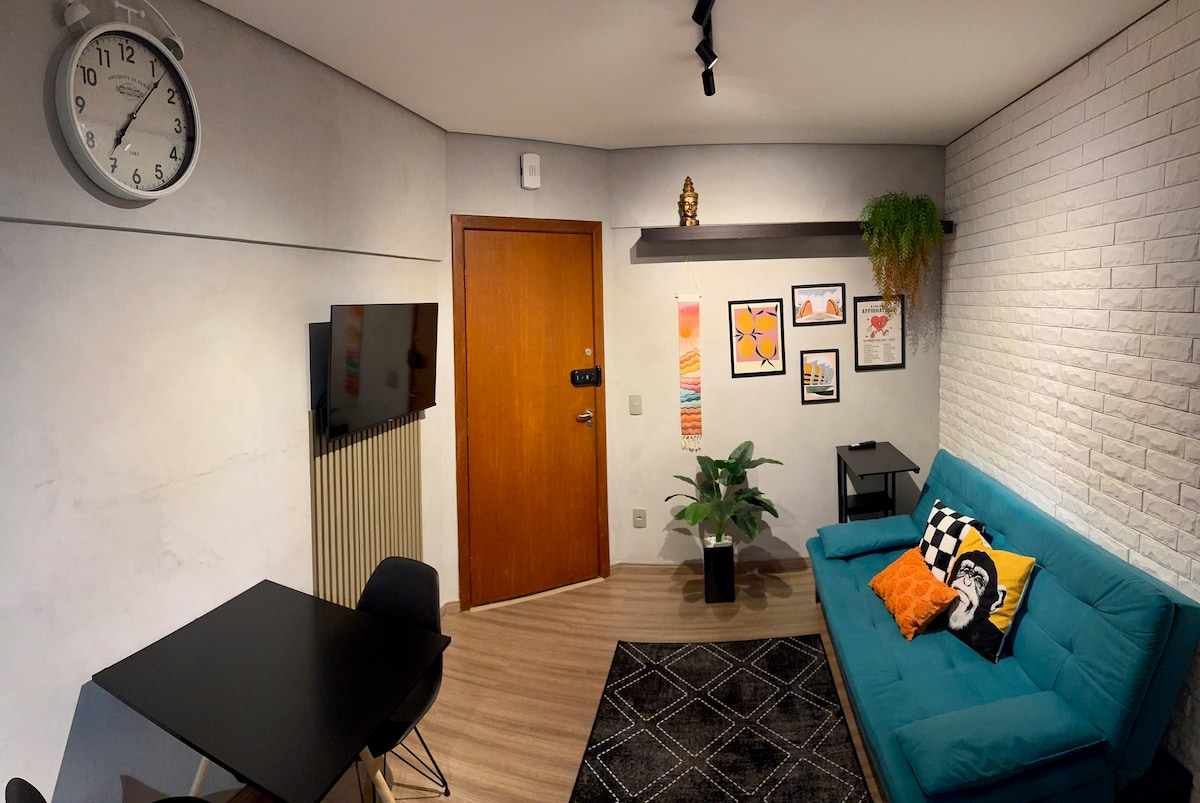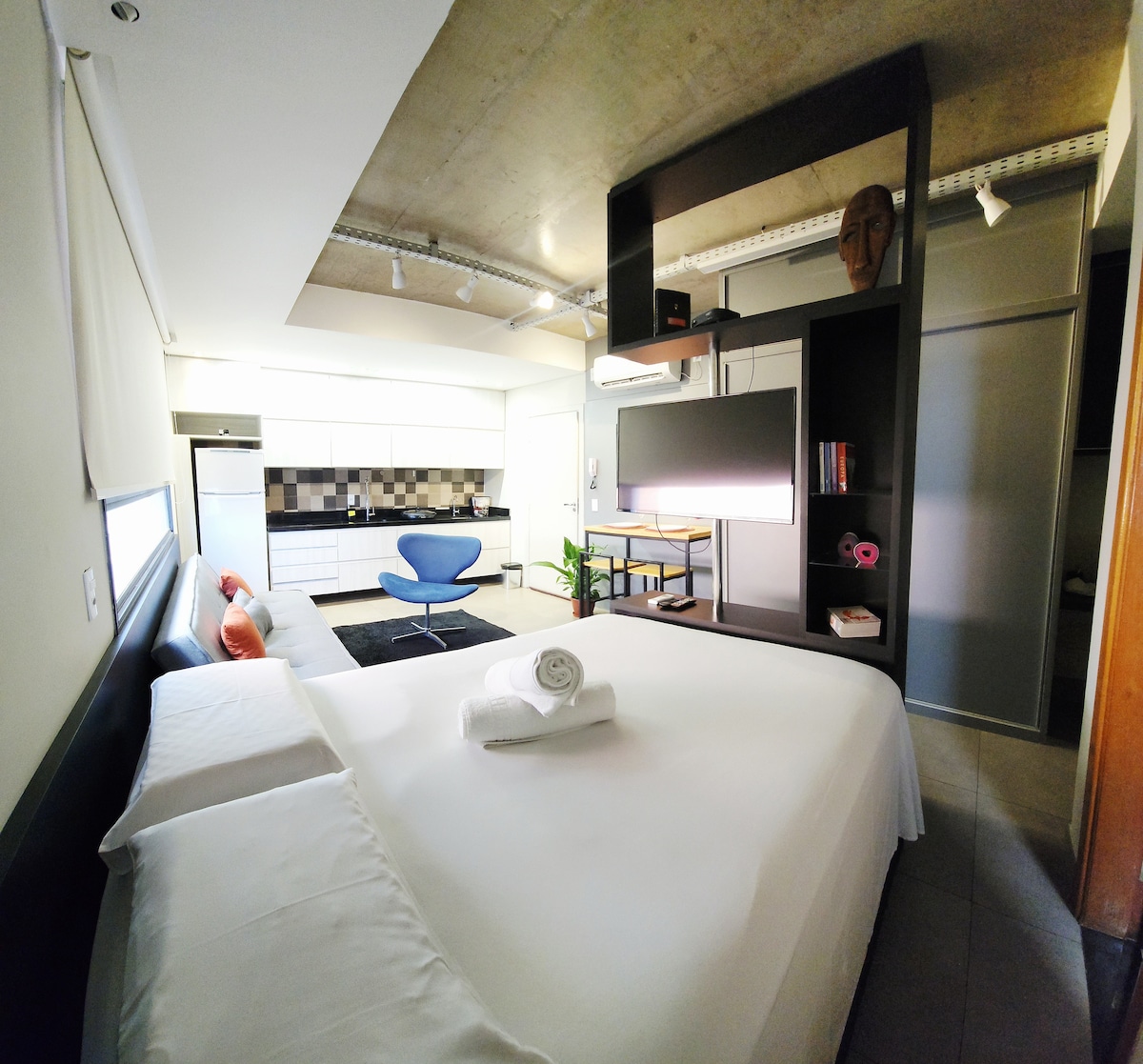 Apartamento moderno, 32m2, localizado no melhor ponto do Sion. Cozinha prática com frigobar, cooktop, TV (canais abertos/Netflix), ar condicionado, secador de cabelo, chaleira elétrica e internet. Zona Sul, ao lado da Praça JK e Avenida Bandeirantes, em frente a um Supermercado. Rooftop do prédio com academia, sauna, piscina, área de convivência e cozinha comunitária (água, máquina de gelo). Limpezas sob demanda disponíveis. Prédio seguro com portaria 24h. *Não há garagem inclusa.