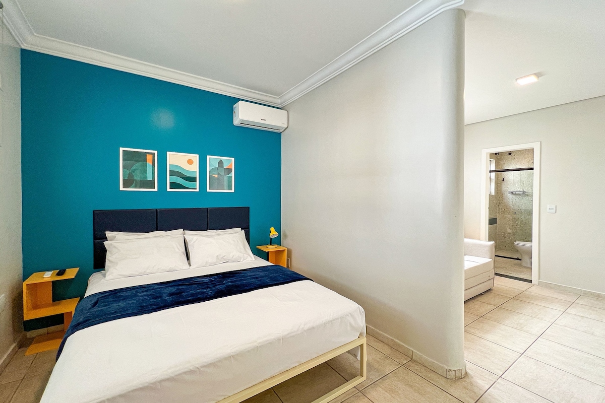 Apartamento super confortável no último andar do prédio, com mobiliário novo que inclui cama de casal queen , TV LCD com canais liberados, Wi-Fi, ar-condicionado digital de última geração. A sala de estar é espaçosa, com cozinha americana, totalmente equipada, mesa de quatro lugares, um sofá para duas pessoas e uma bicama. Na sala, há um retroprojetor que proporciona ambiente de cinema. O banheiro espaçoso possui máquina de lavar e secar.
