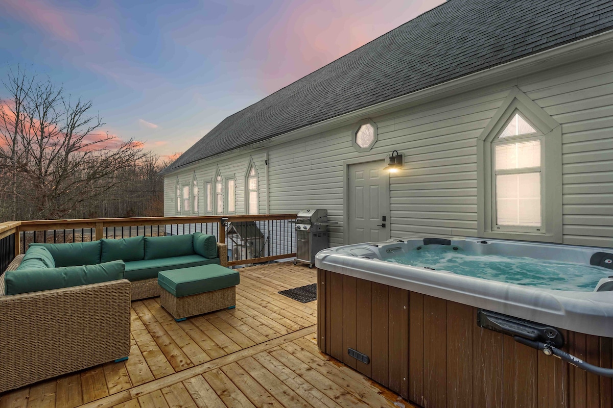 The ESCAPE provides a private oceanfront retreat for you and your family or friends to enjoy. Modern newly built house on large private oceanfront lot. Enjoy the endless ocean views from the large oversized deck, relaxing hot tub, large lawn or oceanfront fire pit. Explore the rocky shoreline and beach areas from your front steps! This remarkable getaway is located less than 1.5hrs from Halifax and is a short drive off the highway.