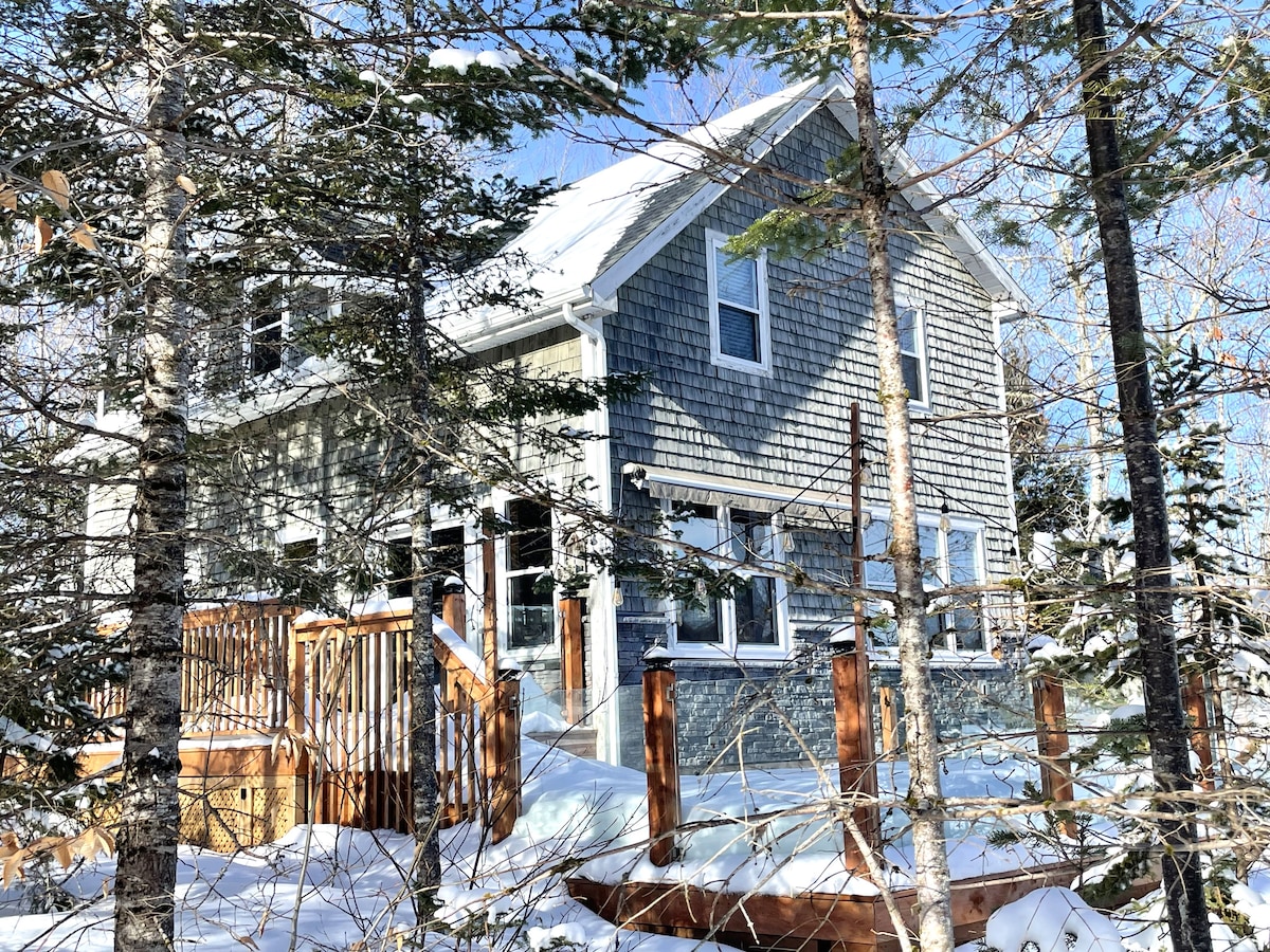 This bright oceanfront chalet/cabin is secluded, quiet and all about nature, 20 minutes from Halifax. There are 2 bedrooms, 2 bathrooms, 2 floors with a deck right on the ocean. The chabet is open concept, modern, and finished with hardwood floors, copper accents and all the basic comforts. The location makes it ideal for hiking, yoga, relaxing and oceanfront living. The house is 1300 ft2. There is a heat pump for heating and cooling, the woodstove is not for guest use.